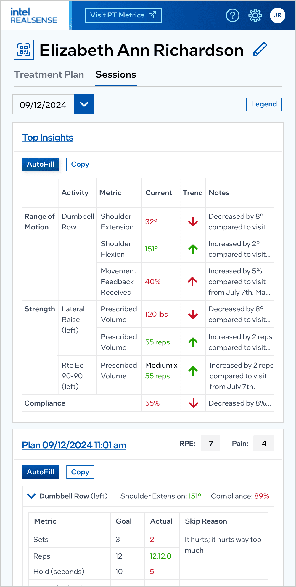 PT Metrics is a product within Intel's incubator, it focuses on the physical therapy space. It delivers real-time guided physical therapy exercises while tracking detailed metrics to enhance patient outcomes and support recovery progress.