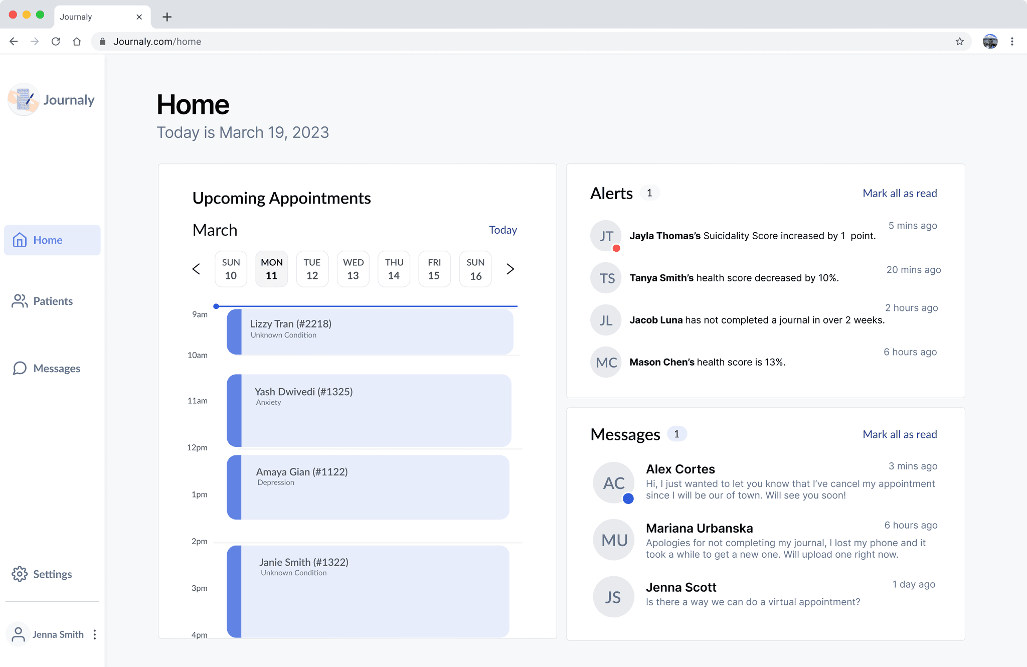 Alerts next to the calendar help therapists quickly adjust their schedules in case of patient emergencies.