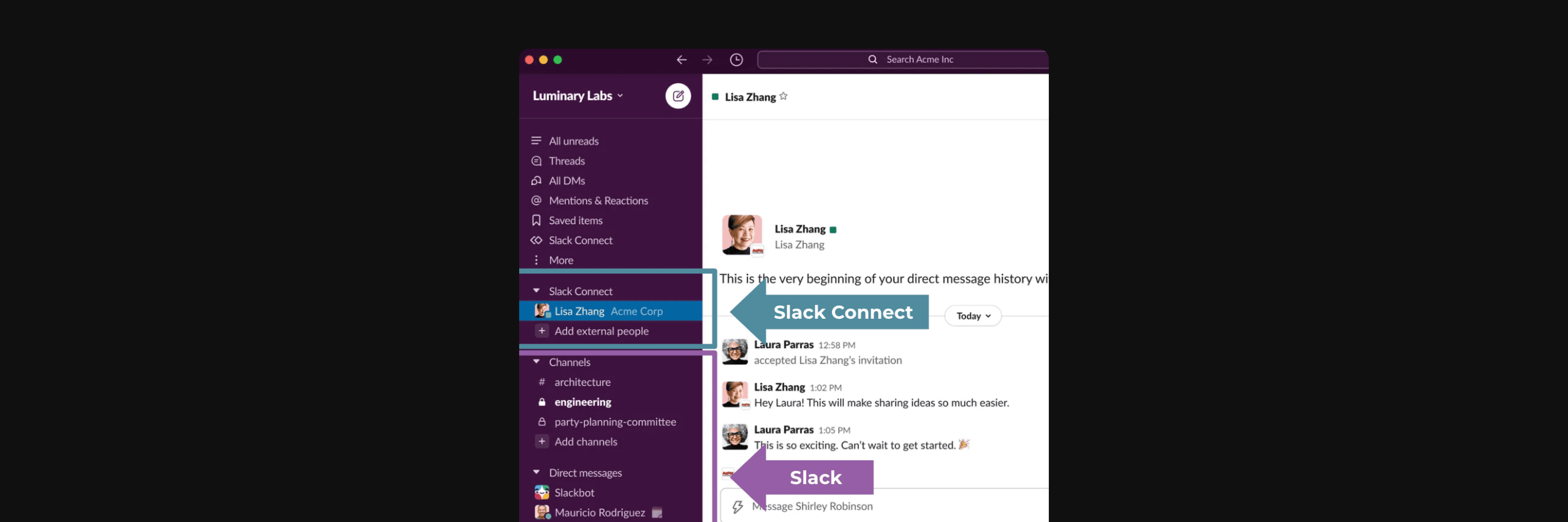 Incorporate Slack Connect communication without having to download the app.